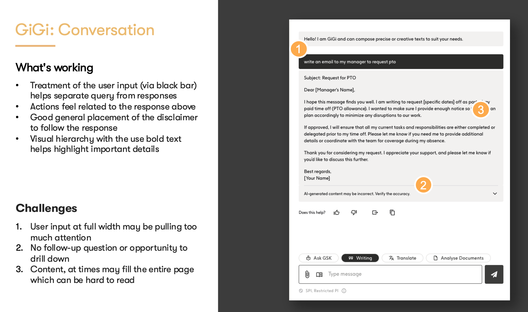 GiGi, the AI-powered assistant built by GSK, was a great first step into leveraging AI to serve the needs of its employees. There were, however, numerous issues around usability, aesthetics and site organization in general. My team was asked to be a fresh set of eyes to look critically at the tool and refine it holistically.